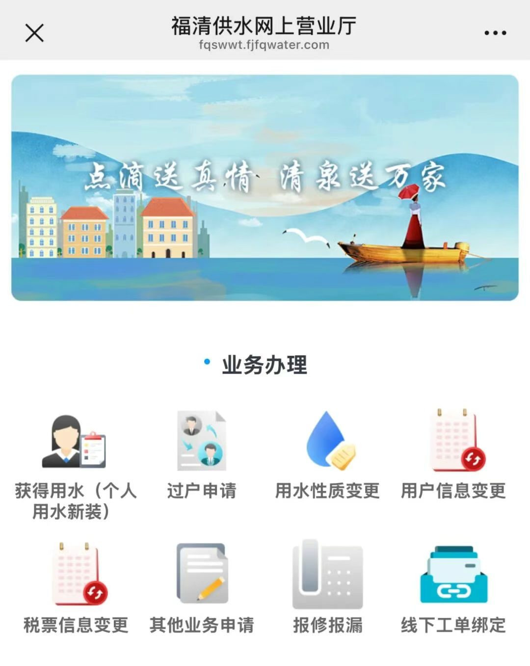 第一步:關注“福水e辦”服務號;