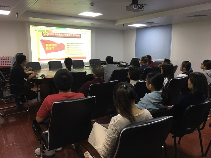 10月19日,省水電物供公司組織全體職工開展憲法學習宣傳教育活動。通過收看《學習新憲法》PPT視頻課件,公司員工對憲法在治國理政中的重要地位和作用、本次修改憲法的原由、原則、要求以及修改的具體內容等有了更深刻的認識。