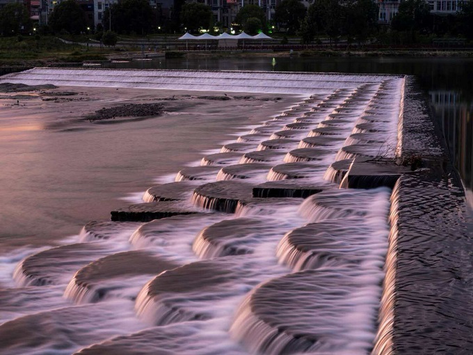 綠水工程1#壩是松溪水美城市PPP項目完工的首個節點工程,屬壅水壩,壩后形成綠水漪鏈的湖面,壩前則是獨具特色的魚鱗疊水景觀,成為湛盧明月下水美松溪的一道印記。