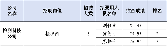 根據(jù)福建水投集團檢測科技有限公司2025年第一批招聘公告,經(jīng)過報名、資格審查、筆試、面試等公開招聘程序,現(xiàn)將3位擬錄用人員進行公示。公示時間從2025年7月22日開始,公示期為五個工作日。在此期間內(nèi),如有意見可通過來電、來信、來訪的形式反映情況。